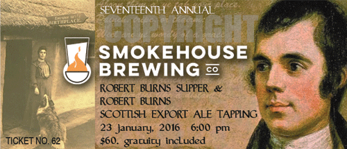 More poetry, more fun, more blue... if you've been to this event before, you're bored reading this because there is no way to describe how fun the evening is. If you've never atteneded before, you'll have a great time. You're also likely to be called a Rabbie Virgin by the others. You can purchase your tickets at the brewpub for $60, including gratuity. Ohio sales tax will be added to your purchase price, or you can purchase on line for just $62 plus sales tax. Your tickets will be waiting for you to pick up the next time you're in. See you there, and one more thing...Johnnie lad, cock up your beaver!